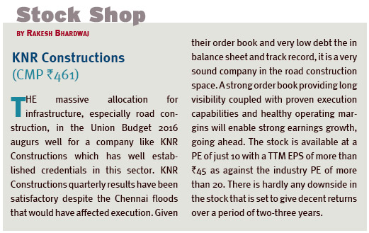 EXCEPT for introduction of dividend tax for those receiving it in excess of Rs. 10 lakh, I could hardly find anything that can be termed negative for the market in the Union Budget 2016. The measure of dividend tax can best be described as ‘penny wise pound foolish’, looking at the current scenario of the market and the disproportionate damage it may cause to the sentiment compared to the minuscule revenue it will end up generating. In fact, the much-needed focus on agriculture, rural development and infrastructure will give the desired push to demand stimulation in rural India, that has become a matter of concern post two consecutive monsoon failures and the world economy going through a massive slowdown. Also, it will be a step towards ensuring food security and will prepare the necessary base for the ‘Make in India’ initiative.