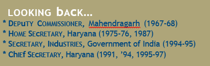 I was posted as deputy commissioner, Mahendragarh, in Narnaul in 1967 during the Rao Birender Singh re- gime, but left for a central deputation in 1968 and joined the department as a fresh entrant. I returned to the state in 1972. Thereafter, till my retirement in 1997, I continued to alternate between the state and central governments.
