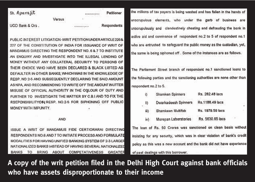 The bank understated its NPAs even in the prospectus issued at the time of its IPO – an act amounting to misstate ment in the prospectus which makes the director and all those who authorized the issue of such a prospectus liable for civil and criminal prosecution under the Indian Companies Act. gfiles is in possession of documentary evidence against various senior officials of the bank who disbursed huge loans without seeking collateral – and to borrowers who were blacklisted and declared defaulters by other nationalized banks.We also have evidence against some officials who have accumulated wealth disproportionate to their known sources of income. A writ petition is also pending with the Delhi High Court on this matter.