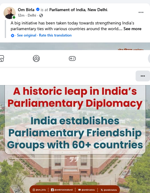 According to sources, the Speaker has constituted Friendship Groups with over 60 countries in the first phase itself, with plans to expand further. The outreach includes engagement with nations such as United States, Russia, United Kingdom, France, Japan, Australia, Saudi Arabia, Israel and the European Parliament, among others.