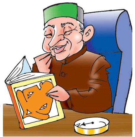 Visitors easily get the feeling that they are about to meet a Minister from Himachal Pradesh. The first indicator is the sight of the peon with a trademark Himachali cap outside the door. Virbhadra does not believe in wasting money on redecorating the office but he does believe in vastu. Earlier, his desk would face west. He has rearranged the furniture and now sits facing the east.